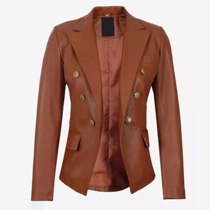 Women’s Leather Blazers Women’s Leather Blazers Introducing our stunning Double Breasted Cognac Leather Blazer for women. This blazer is beautifully
