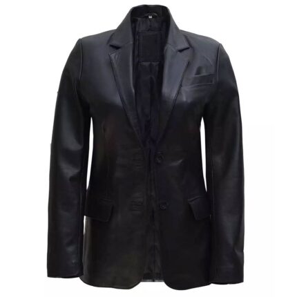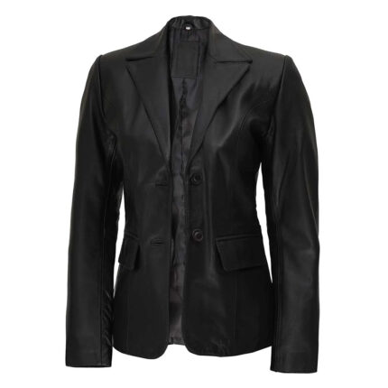 Women’s Leather Blazers Women’s Leather Blazers Step into elegance with our Two Button Notch Lapel Black Leather Blazer Jacket for