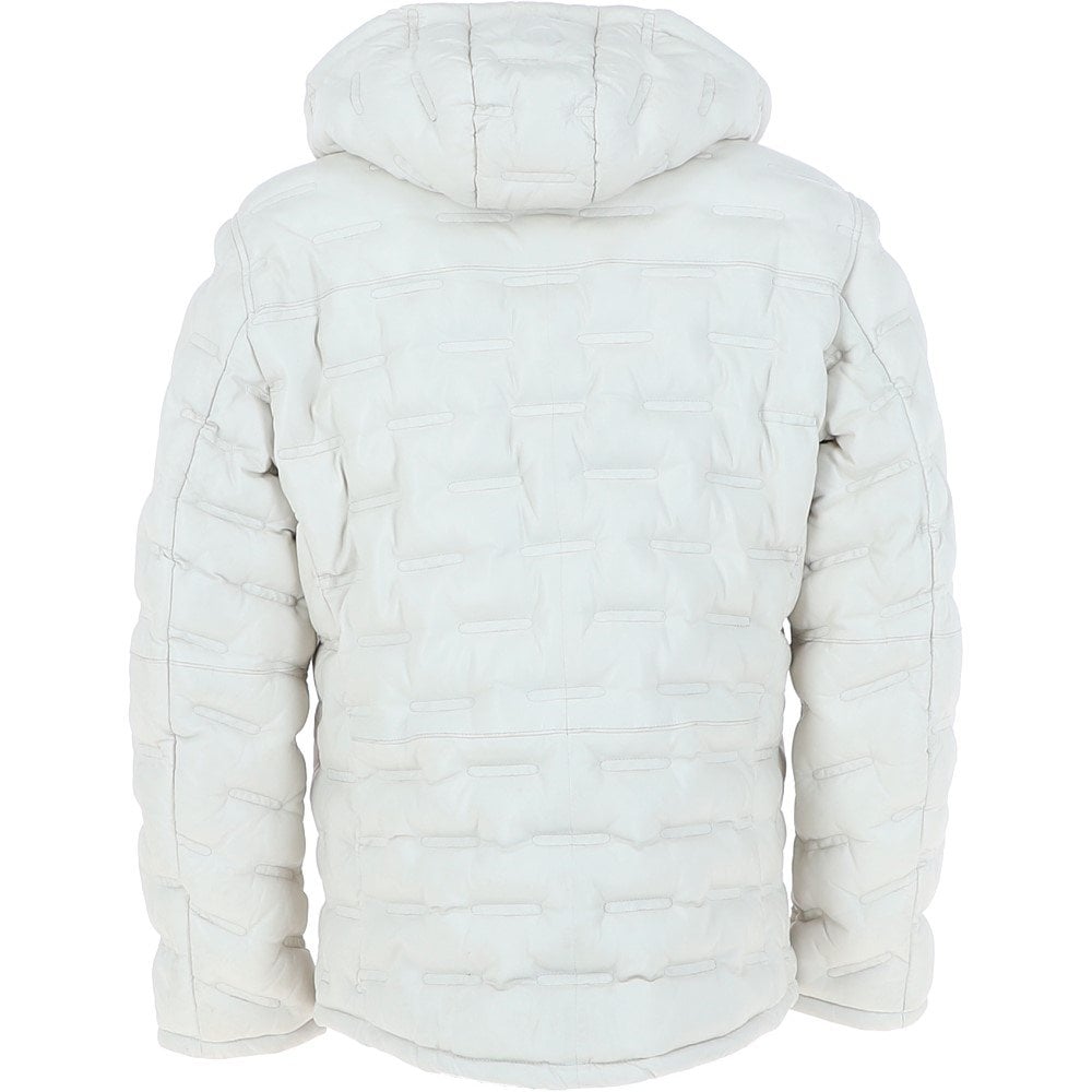 This Hooded White Leather Puffer Jacket is the most stylish and elegant way to ward off the cold. It completely changes the concept of puffer jackets by the use of a classy, creamy off-white (or ivory) fake leather outer that gives a very luxurious feel of high-end that is unaccessible in the normal outerwear. The leather is accentuated with a delicate embossed quilted pattern that provides a distinct, opulent texture.