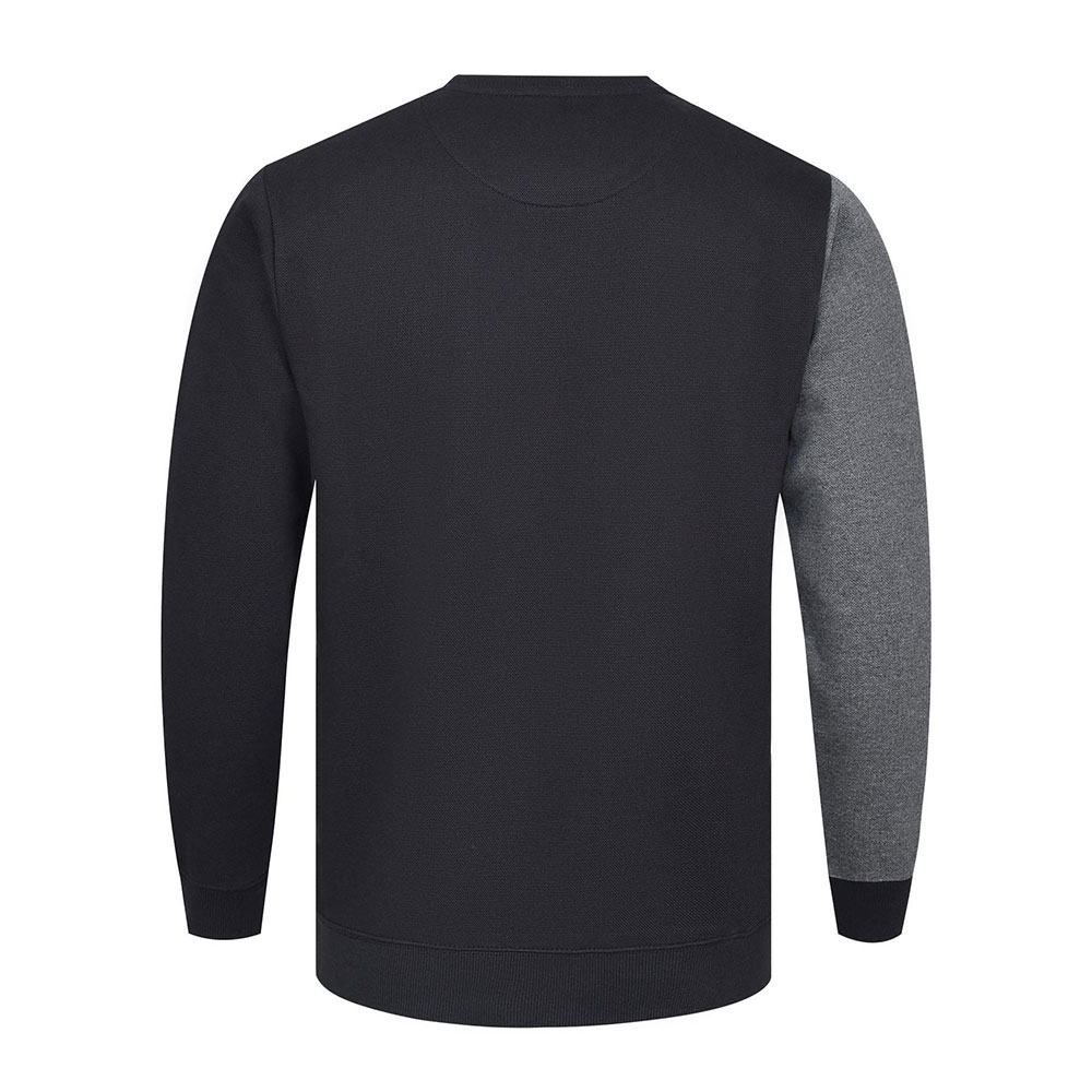 The Geometric Color Block Crewneck Sweatshirt is a stylish, modern, and trendy remake of the traditional pullover. It showcases a daring diagonal panel design that splits the front into three separate parts, which are the main dark charcoal or black fleece, a section of light heather grey that contrasts, and a full grey sleeve. This asymmetrical blocking gives a new, contemporary appearance.